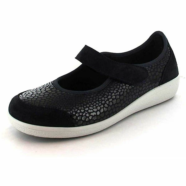 Schöne Ballerinas von Florett aus einem feinen hochwertigem geprägten Glattleder. Der Schuh hat eine normale Weite. Der Absatz ist durchgehend flach. Die Laufsohle ist aus Gummi. Der Klettverschluss zum einfachen und bequemen an- und ausziehen sorgt für einen guten Halt.Ebenfalls ist eine stufenlose Anpassung an den Fuß möglich. Die Schuhgröße fällt regulär aus.