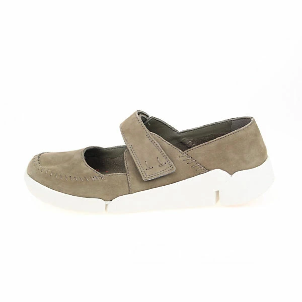 Schöne Ballerinas von Clarks aus einem feinen hochwertigem Nubukleder. Innen ist der Schuh mit einem cromfrei gegerbtem Leder ausgestattet. Der Schuh hat eine normale Weite. Der Absatz ist durchgehend flach. Die weiche PU-Sohle schont die Gelenke und federt jeden Ihrer Tritte optimal ab. Der Klettverschluss zum einfachen und bequemen an- und ausziehen sorgt für einen guten Halt.Ebenfalls ist eine stufenlose Anpassung an den Fuß möglich. Die Schuhgröße fällt regulär aus.