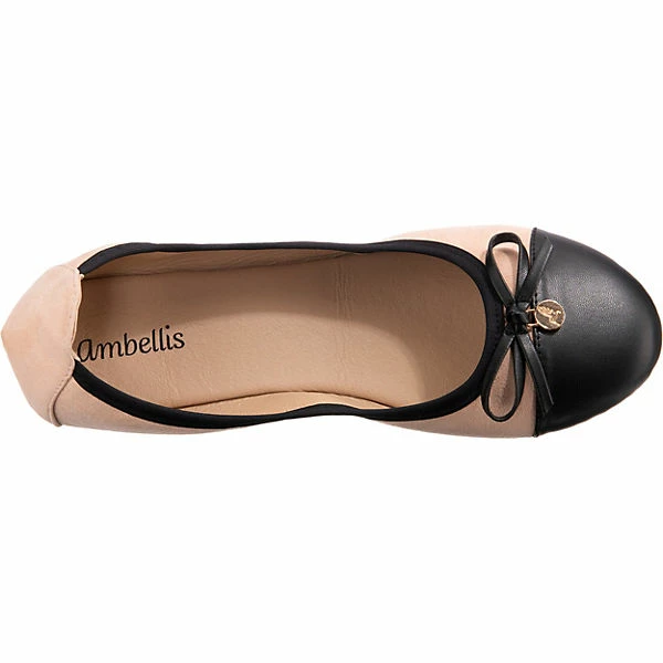 Die Ballerinas der Marke ambellis sorgen stets für einen schicken Style. Es handelt sich um ein Schuhpaar zum bequemen Hineinschlüpfen. Das Obermaterial besteht aus einem Materialmix aus Synthetik und Textil und ist langlebig sowie ansprechend gestaltet.