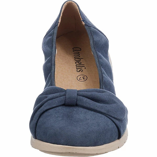 Diese bequemen Komfort-Ballerinas aus dem Hause ambellis bewirken ein angenehmes Laufgefühl. In die Schuhe kann ganz schnell hineingeschlüpft werden. Die textile Oberfläche ergänzt das Design des Paares.