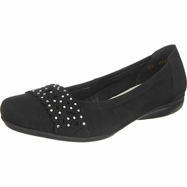 Schlicht komfortable rieker Ballerinas mit dekorativem Riemen an der Schuhspitze. Die flexible Laufsohle macht jede Bewegung mit und verleiht den Schuhen eine leichte sportliche Note.