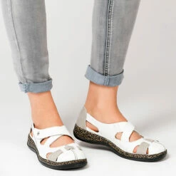 Sportlich, abwechslungsreich und aus vielen Perspektiven äußerst interessant kommen die Ballerinas von RIEKER auf die Straße und vielleicht auch in Ihr Schuhregal. Die offene Gestaltung aus einem strapazierfähigen Glattleder lässt viele Kombinationen mit sommerlicher Kleidung zu und bietet ein frisches Schuhwerk für den Alltag oder die bewegte Freizeit aktiver Frauen. Die Laufsohle in der besonderen Gestaltung hebt den Schuh nach hinten auf nur drei Zentimeter an und ermöglicht ein unkompliziertes und ermüdungsfreies Laufen. Dabei sieht der Schuh immer gut aus und zeigt sich als sehr aufmerksamkeitsstark. Genügend guter Gründe für einen Schuh, der Sportlichkeit und Ausdauer mit weiblichem Style verbinden kann.