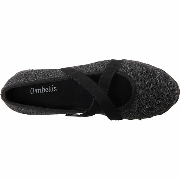 Diese modisch aktuellen Ballerinas aus dem Hause ambellis ergänzen verschiedenste Outfits. Die textile Oberfläche ist anpassungsfähig und überzeugt durch ein geringes Gewicht. Durch den Riemenverschluss kann die Schuhweite den Bedürfnissen entsprechend reguliert werden.